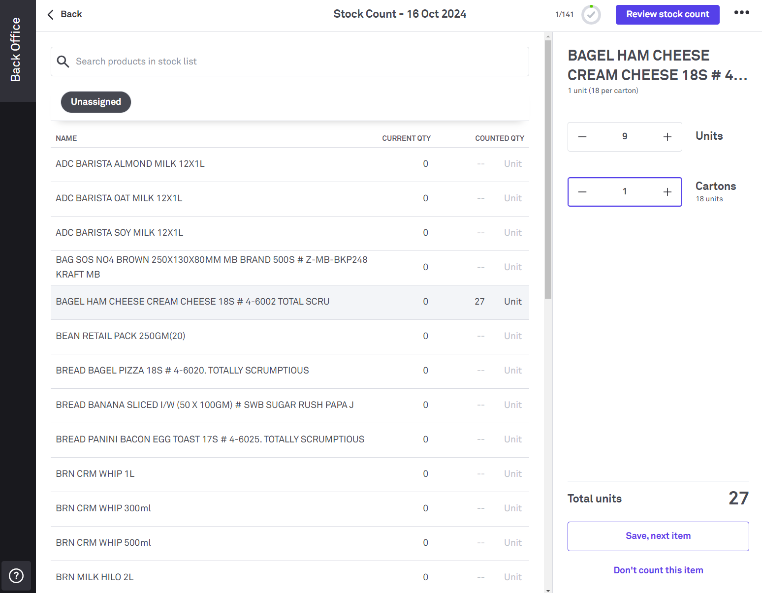 4. If you need to stop counting stock select Back, then Save.