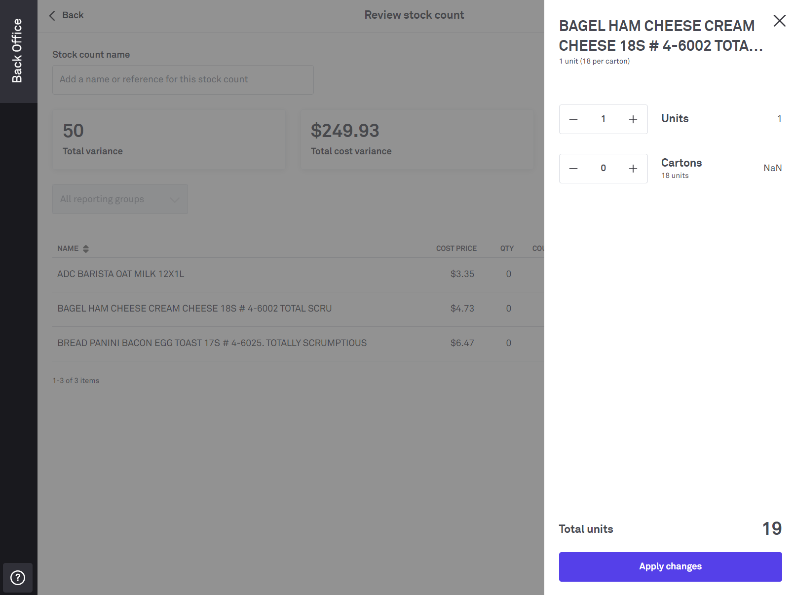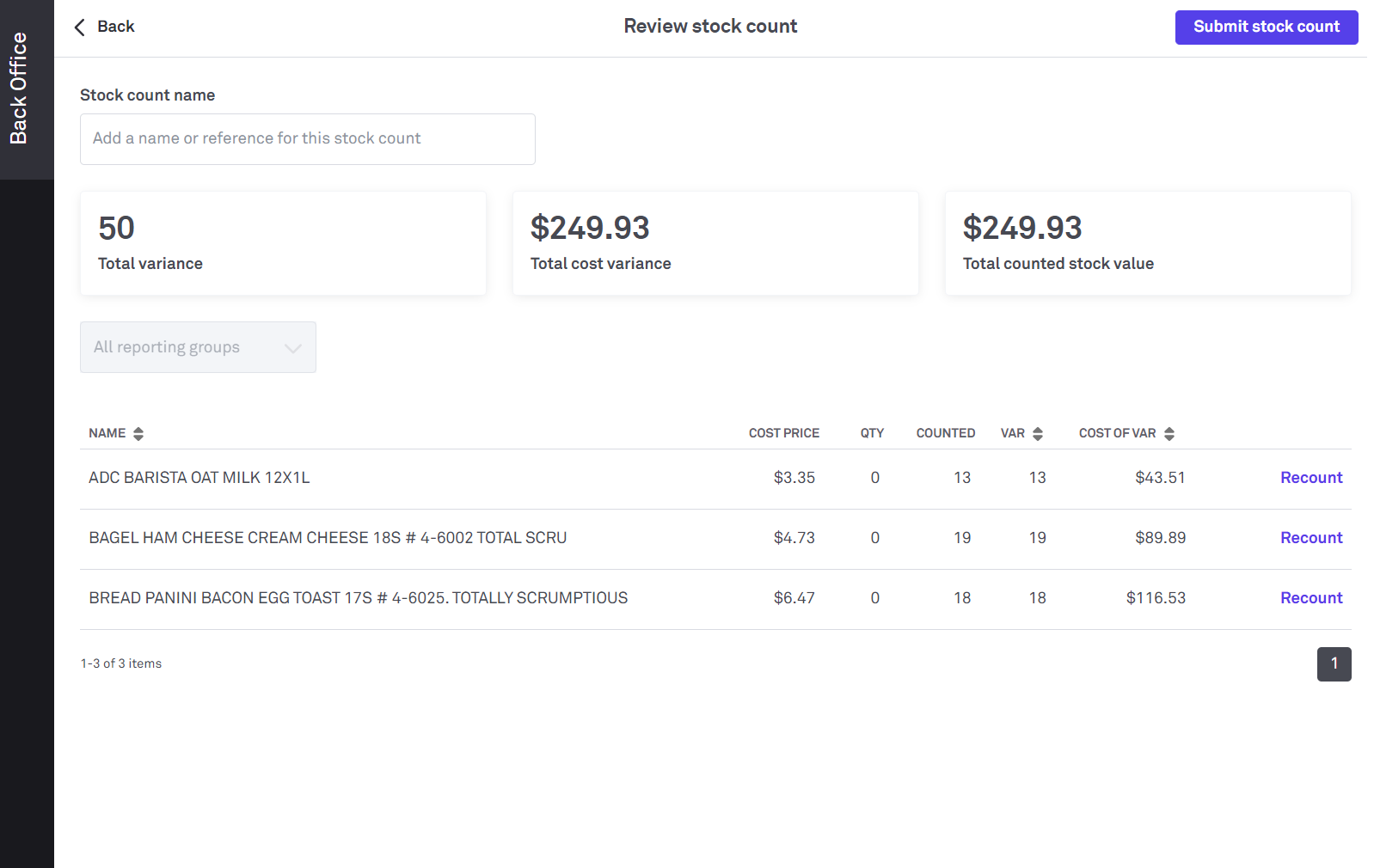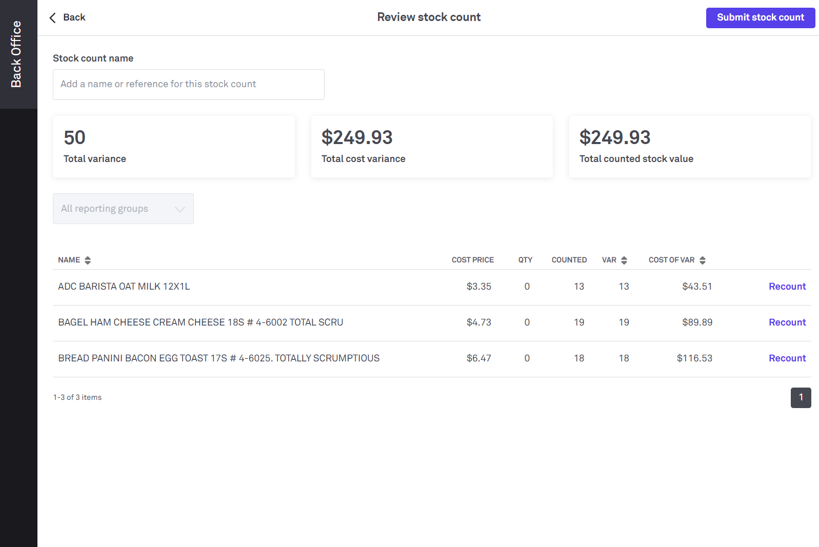 4. When ready select Submit stock count